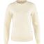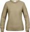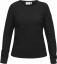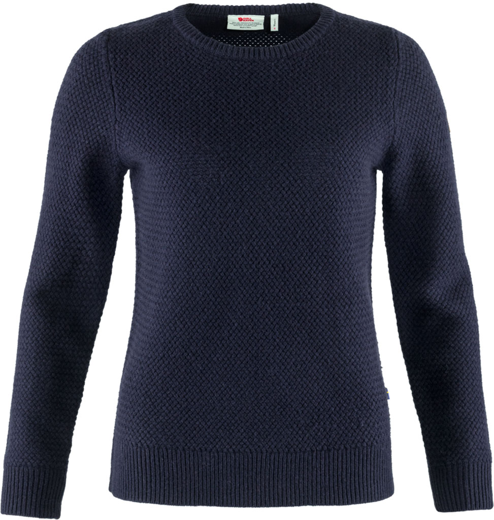 Rund hals og ribbestrikkede mansjetter og nederkant.