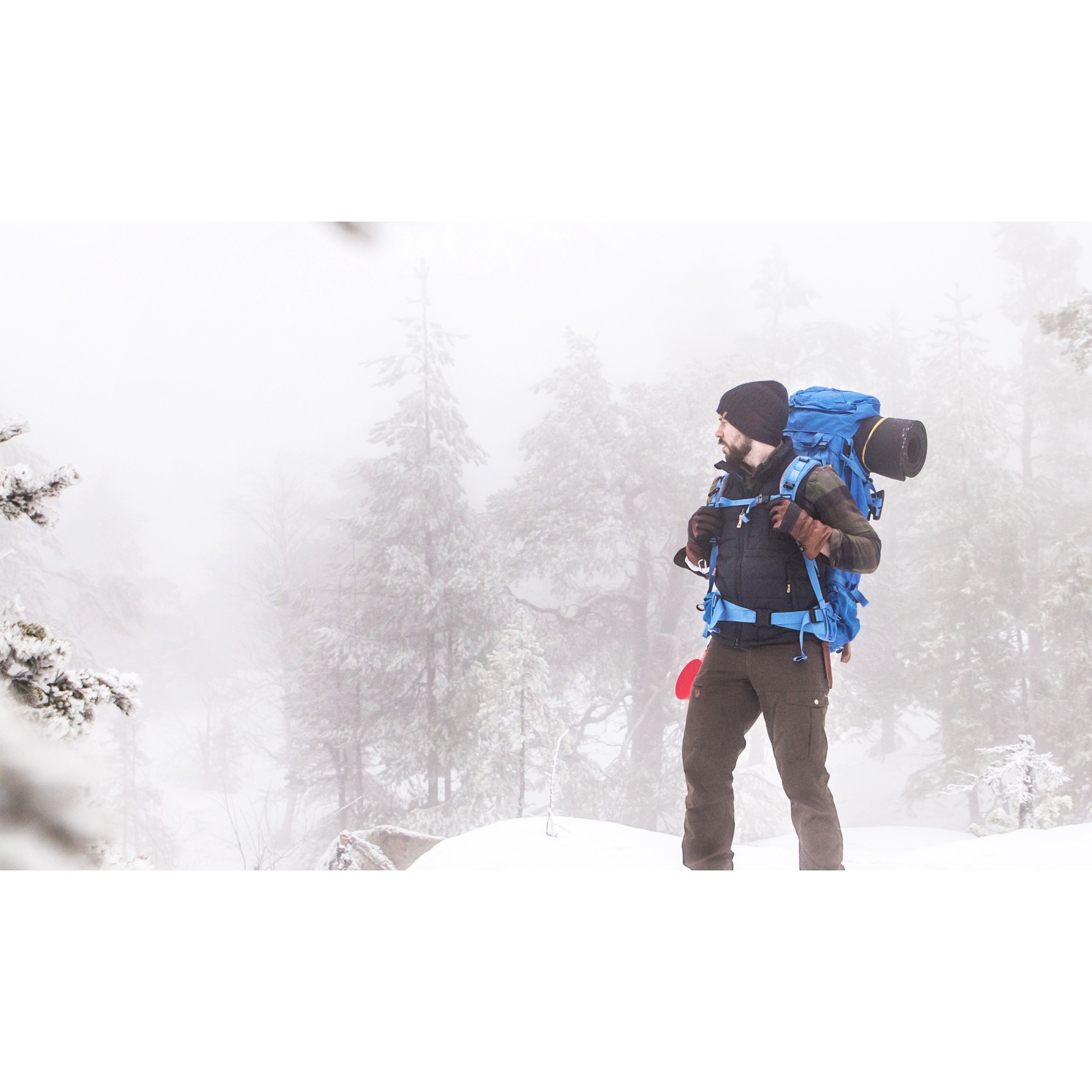 Varm og solid bukse til friluftsliv på den kalde årstiden. Fremstilt av solid G-1000 Silent med en myk børstet utside og fôret med luftig netting ned til rett under kneet for å gi ekstra varme der du trenger det mest.Én stor benlomme med plass til et kart på det høyre benet og en lomme til et multiverktøy på det venstre. Den har også stikklommer og baklommer. Normal passform og midje og en noe smalere passform over leggene. Benavslutningen er ikke faldet opp og kan lett tilpasses din egen benlengde.