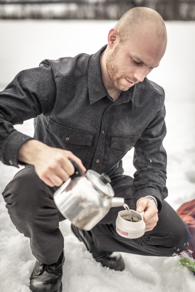 Robust skjorte i tovet ullblanding med G-1000-forsterkninger. En smart knapp gjør at kragen kan festes rundt halsen når det er kaldt.