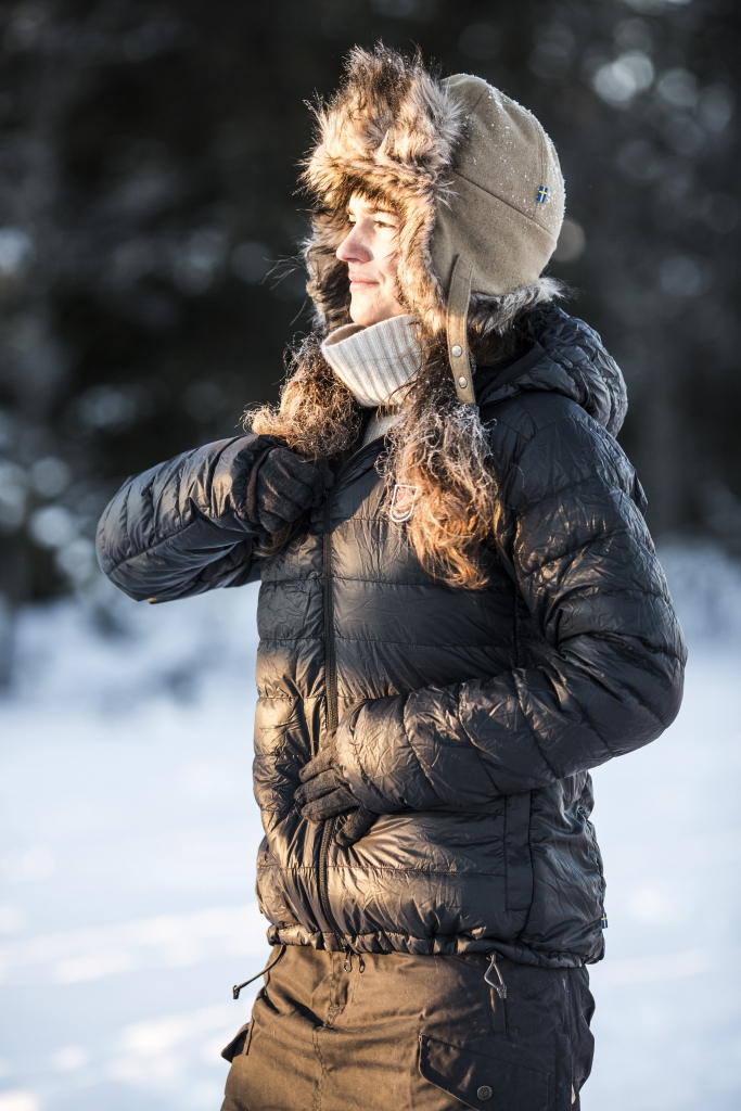 Lett og pakkbar dunjakke for ekstra varme på fjellturen. Fast hette håndlommer og sidepaneler med syntetisk fyll.