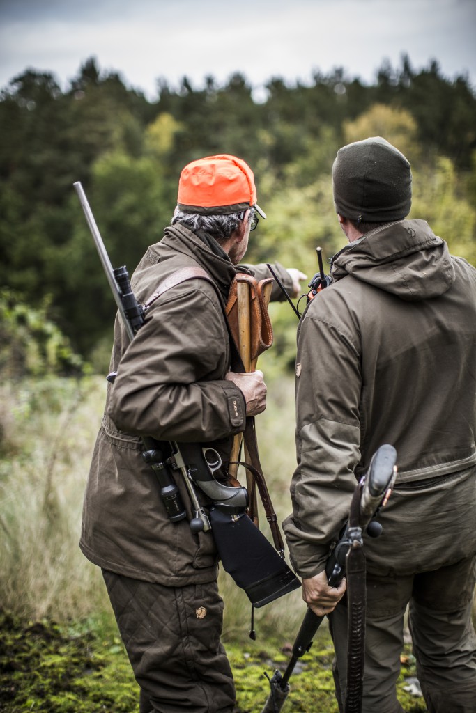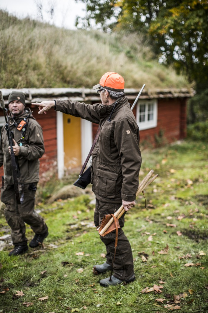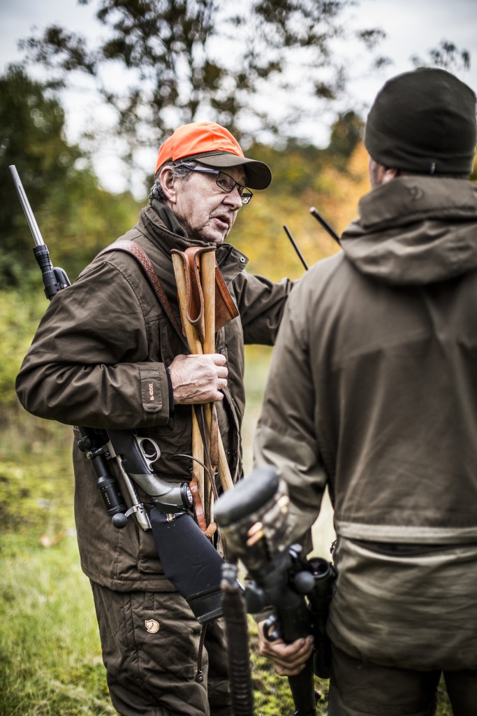 Oransje sikkerhetsfarge bak en klaff som er lett å folde ned og kneppe på plass ved nakken.