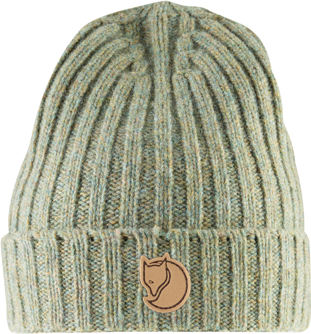 Ribbestrikket lue med brettet kant. To-farget tvinnet garn i resirkulert ull og polyamid gir den et melange-utseende. Den perfekte luen når det er kaldt ute, den er enkel å brette sammen i lommen når den ikke er i bruk.