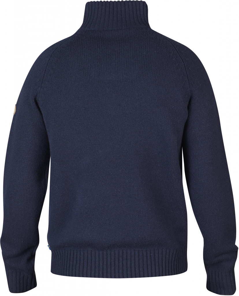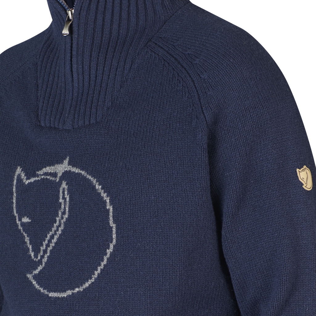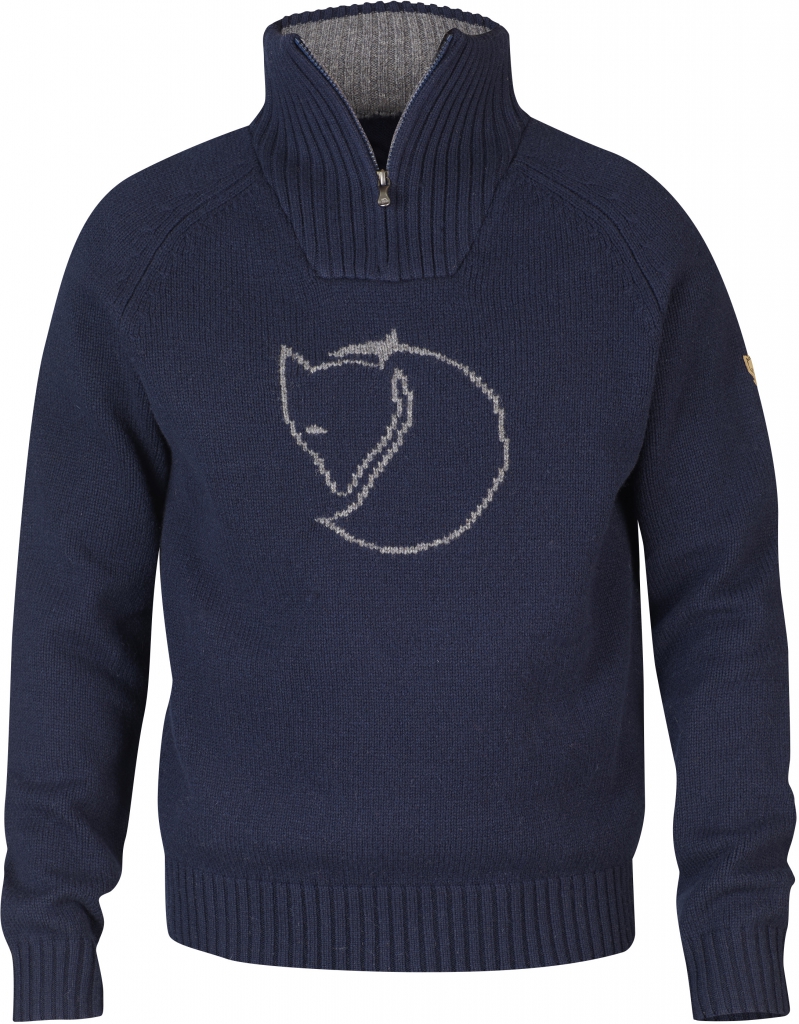 Red Fox Genser fra Fjellreven er en varm genser i myk ull. Høy ribbestrikket krage med kort glidelås og ribbestrikk nederst på genseren og rundt ermene. Fjellreven-logo på brystet.