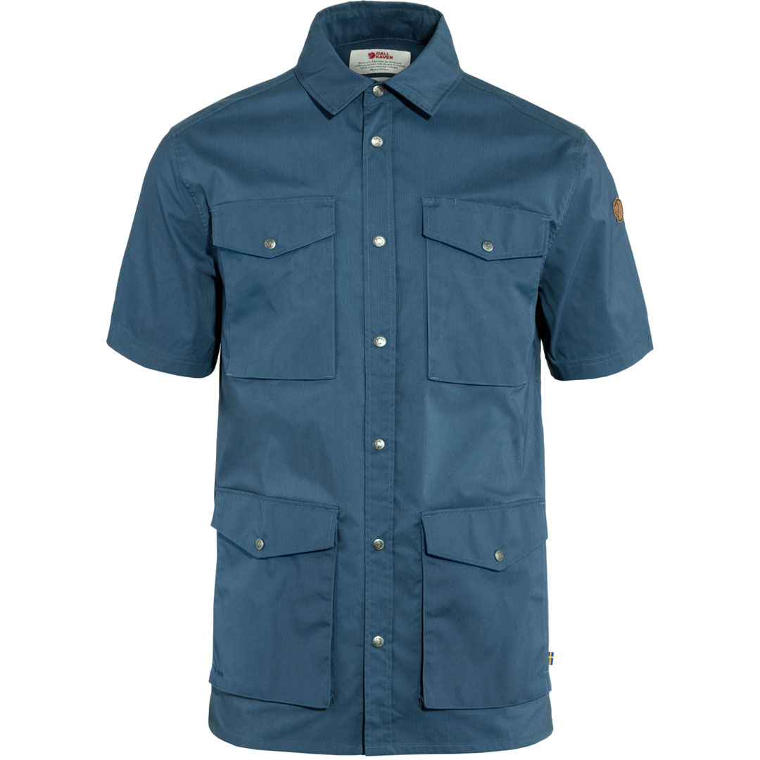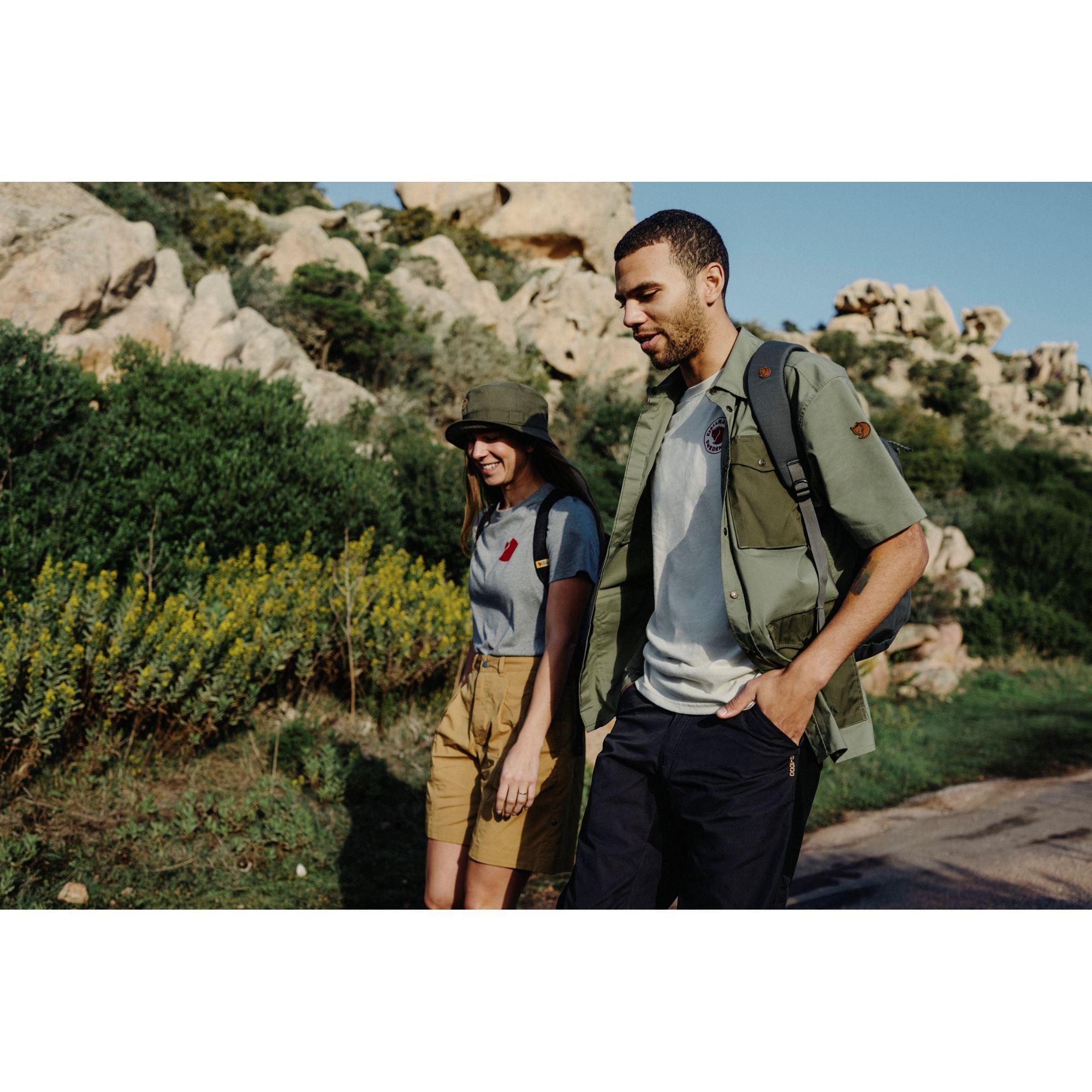 Allsidig og behagelig kortermet skjorte i G-1000 Air Stretch med funksjonelle lommer i G-1000 Eco Stretch. Räven Shirt SS M passer perfekt til friluftslivets eventyr og også til hverdagen i byen. Den komfortable passformen gir god luftstrøm på hele kroppen og nok rom til et lag under. To store belglommer med knepping, ekstra åpninger ved sidene og to brystlommer med klaffer og knapper.