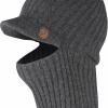 Stilig og praktisk kaps med finlandshette. Ribbestrikket i en robust ull-/polyamidblanding som transporterer bort fuktighet og varmer selv i fuktig tilstand.Enkel å tilpasse til værforholdene. Du kan brette opp den nederste delen og bruke den som kaps i mildvær eller brette den ned rundt kinn og hake i kaldt vær og sno. Liten skinnlogo på skyggen.
