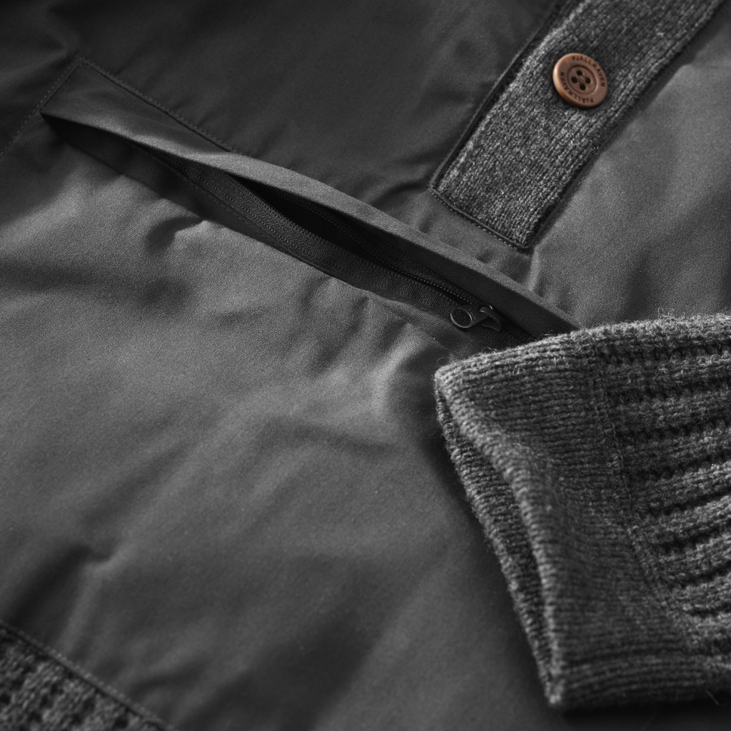 Forsterkninger i G-1000 over forstykket holder den kalde vinden ute og genseren har en praktisk kengurulomme med glidelåser der du kan oppbevare små gjenstander lett tilgjengelig. Kragen er så høy at den varmer hals og nakke og den halvlange åpningen med corozo-knapper gjør det enkelt å ventilere ut eventuell overflødig varme.