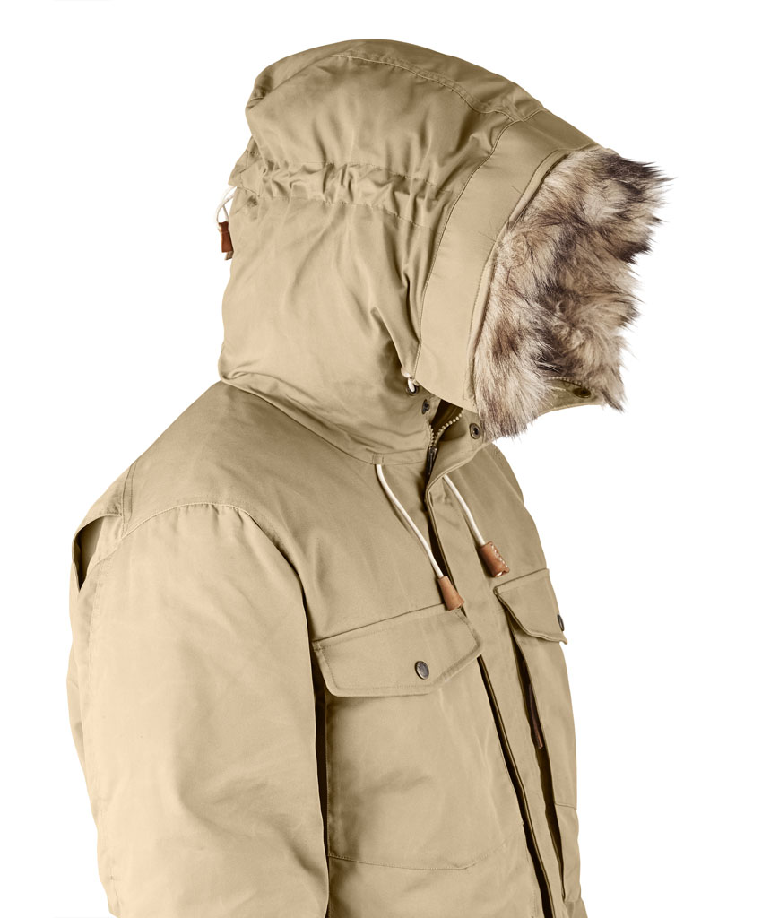Varm og slitesterk dunjakke til de virkelig kalde vinterdagene. En klassisk, lang modell med yttermateriale i holdbart G-1000 og ekstra slitesterkt G-1000 HeavyDuty over skuldrene og setet. Fyllet er sporbar dun av høy kvalitet, som er forsterket med syntetisk fyll over skuldrene og på albuene for ekstra holdbarhet mot vær og slitasje. Perfekt for vinteraktiviteter med lav intensitet i skarpt vintervær, når ingenting skal få hindre deg i å gå ut. Den romslige passformen gir nok av plass til isolerende lag under. Det er en romslig og justerbar hette med avtakbar kant av syntetisk pels, som gir ekstra beskyttelse mot snøføyke. Glidelåsen er toveis og dekket av en bred beskyttende klaff. To store brystlommer med vertikal glidelås og lommer øverst med klaff. I tillegg er det to lommer med toppåpning lenger nede pluss en innerlomme og en glidelåslomme på ermet. Det er snøring i midjen og nederkanten, mens mansjettene justeres med borrelås.