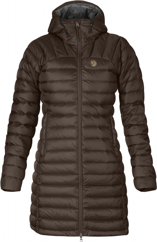 Lang parkas med dunkanaler og Pertex Microlight ytterstoff. Lett men likevel varm.