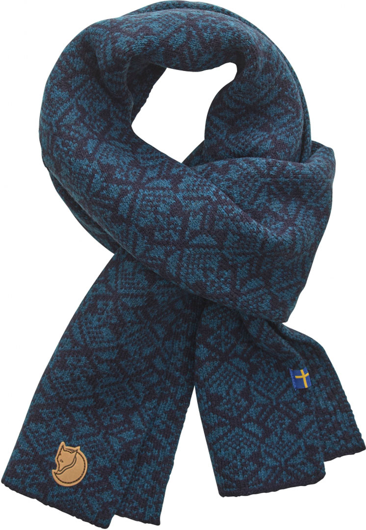 Strikkeskjerf i myk, varm lammeull. Vendbar med dekorativ mønsterstrikk på en side og ribbestrikk på den andre. 100 % lammeull.Mønsterstrikk på en side.Ensfarget ribbestrikk på den andre siden.Måler 170 x 20 cm.Liten logo i lær.Mønsteret er inspirert av skandinavisk folklore.