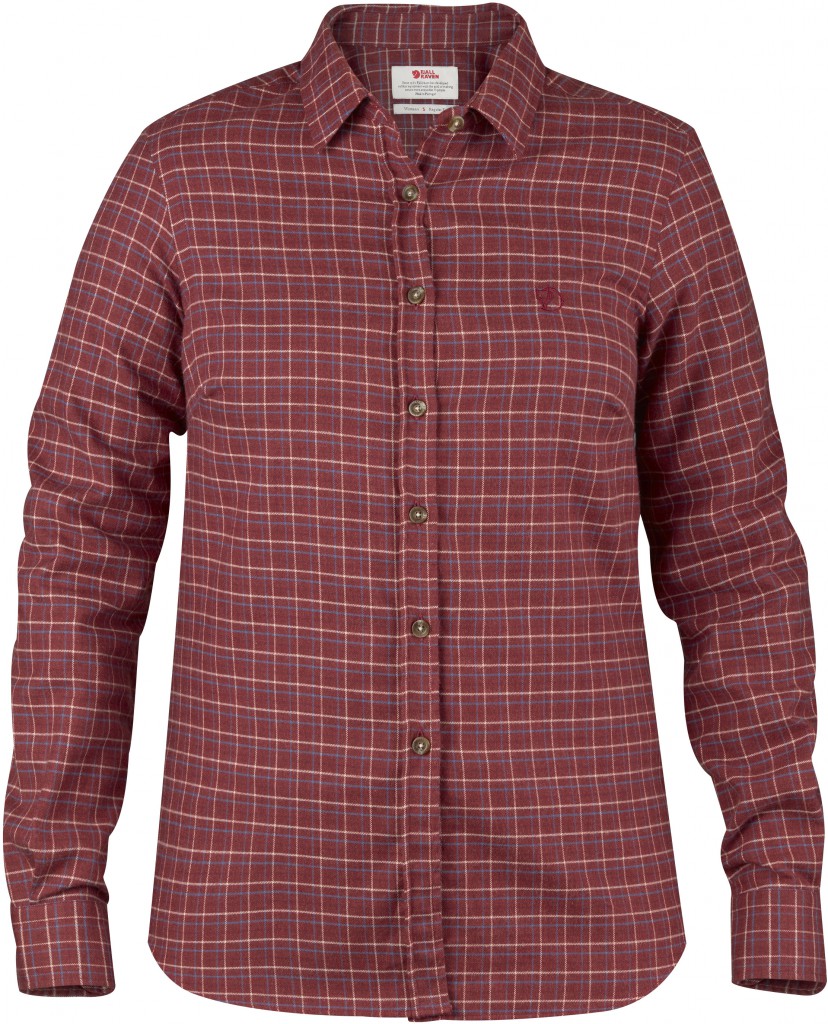 Behagelig langermet skjorte i damemodell i lett myk bomullsflanell. Velsittende feminint snitt som passer perfekt sammen med Fjällrävens jaktgensere.