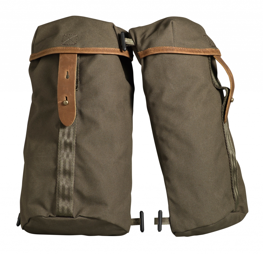 Sidelommer til Stubben i kraftig vokset stoff med lærdetaljer.