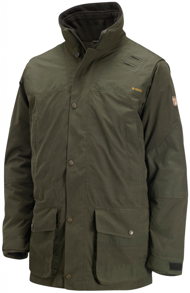 Jakken har romslige napoleonslommer store nok for en Primus termos på 1 liter to stk fleecebelagte lommer for å varme hendene og to store lommer for oppbevaring av patroner (rifle og hagle).