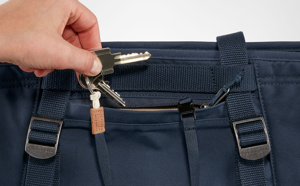 - To store innvendige lommer med glidelåser.Utvendige lommer med glidelås og nøkkelholder.