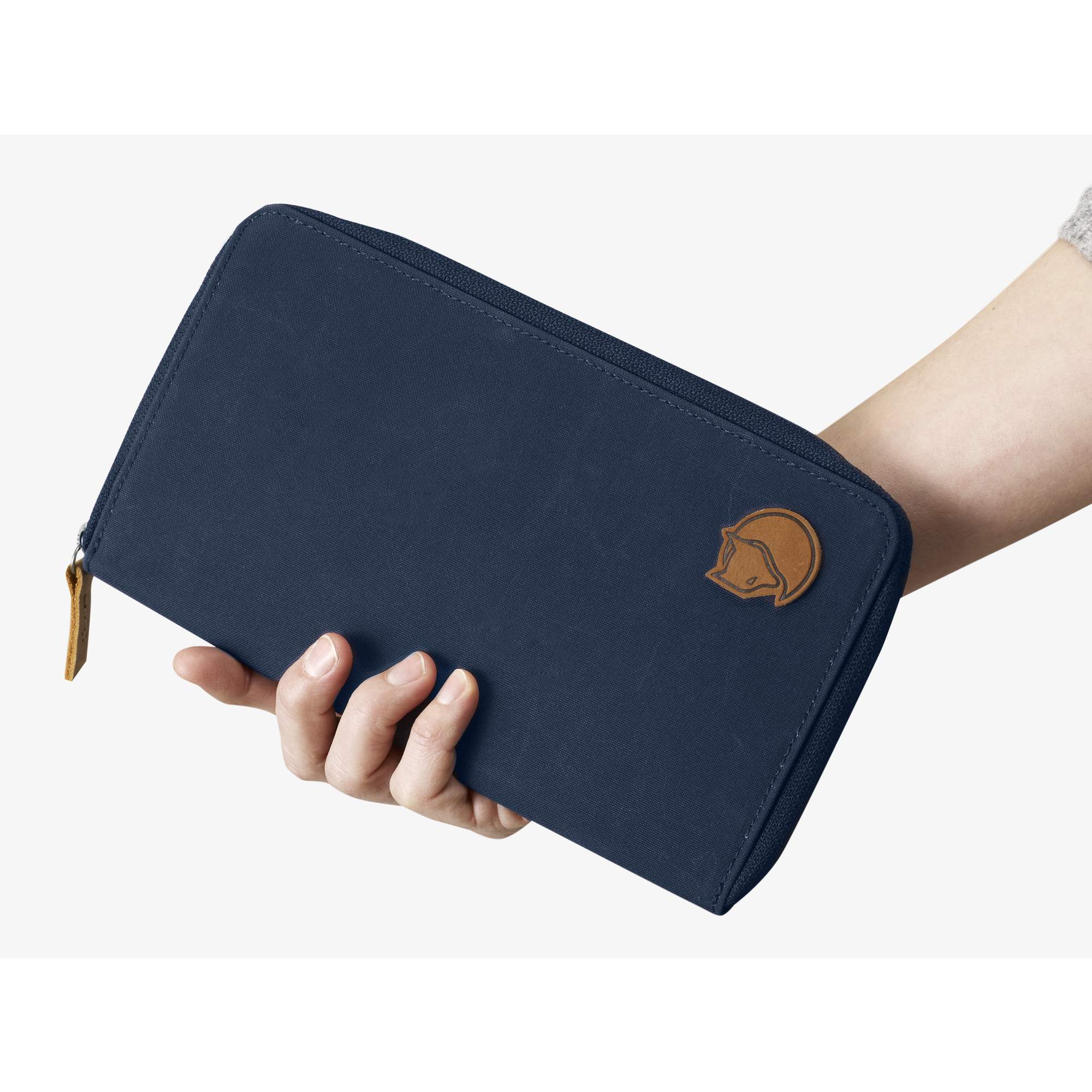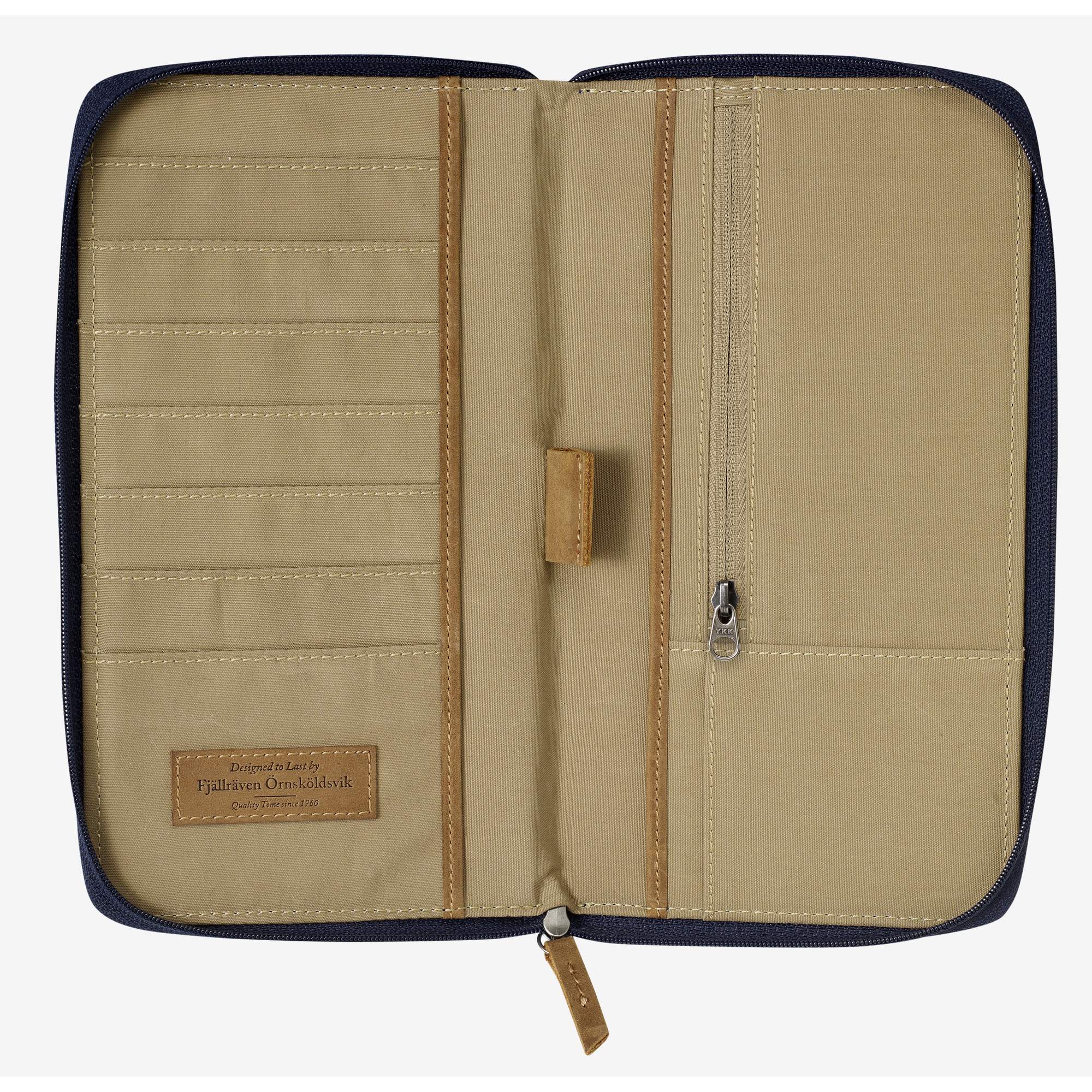 Romslig reiselommebok i holdbar G-1000 HeavyDuty med G-1000 Original på innsiden. Holder orden på penner, pass og ubrettede ombordstigningskort når du er ute og reiser. Med en åpen utvendig lomme kan du ha reisedokumentene lett tilgjengelige på flyplassen. På innsiden er det en åpen lomme til sedler, forretningskort, kredittkort osv. Det er også en innvendig glidelåslomme til mynter. Penneholder og andre detaljer i skinn.