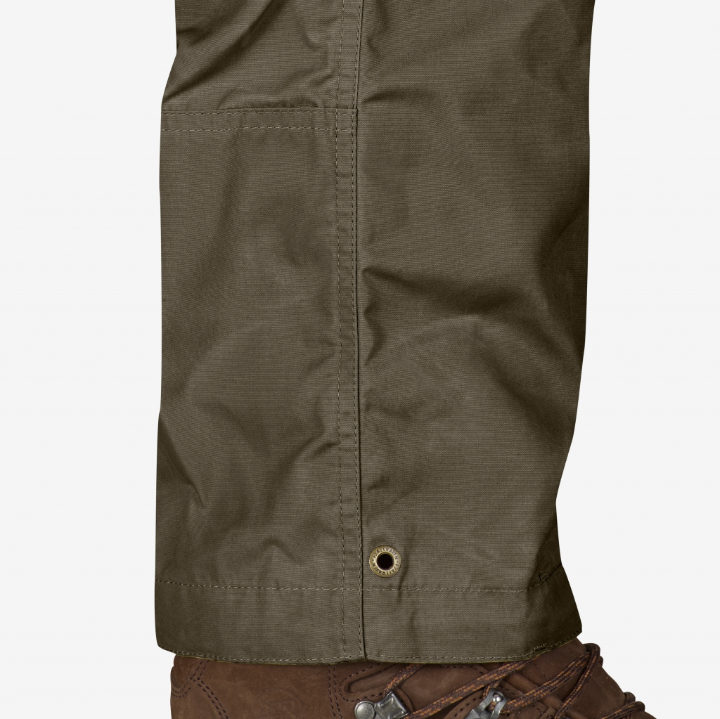 Buksen er fremstilt av vind- og vannavstøtende G-1000 Eco i gjenvunnet polyester og økologisk bomull med forsterkninger i form av dobbelt stoff over setet på knærne og ved benavslutningen.