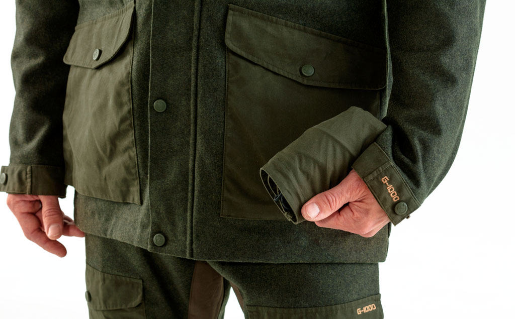 Värmland Wool Jacket er en varm, lydløs jaktjakke som beskytter godt og laget av et flott materiale i resirkulert ull i kombinasjon med G-1000 Silent Eco. De varmeregulerende egenskapene til ull gjør jakken perfekt til passiv jakt med aktive perioder. Hetten kan tas av når den ikke er i bruk. Flere romslige lommer, inkludert ullfôrede håndlommer ved brysthøyde. Et slitesterkt og bærekraftig jaktplagg gir den beste komforten på kalde høstdager.