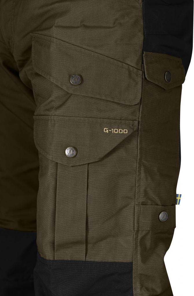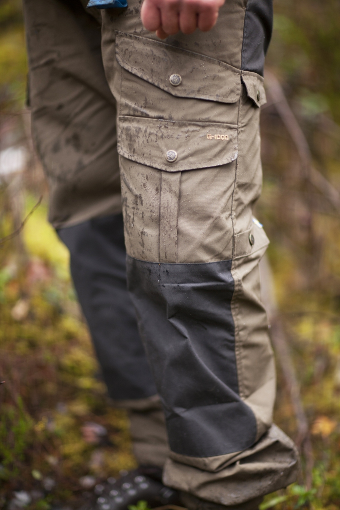Bukser med G-1000 kan impregneres med Greenland Wax.