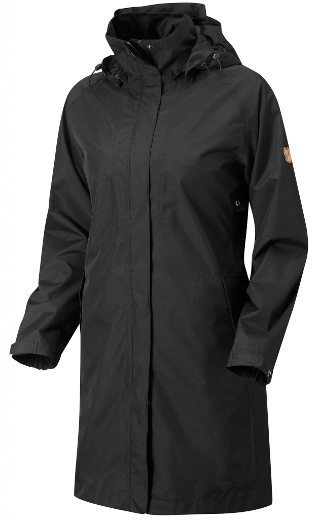 Knelang allværsjakke i tolags Hydratic. Et praktisk hverdags- og reiseplagg som varmer og beskytter mot fukt helt ned på lårene samtidig som den er lett å pakke og fungerer i mange sammenhenger. Avtakbar og justerbar hette to håndlommer og innvendig sikkerhetslomme. Toveisglidelås med beskyttelsesklaff. Ventilasjonsåpning under ermene og knappejustering ved mansjettene. Fôr i polyesternetting og nylon.