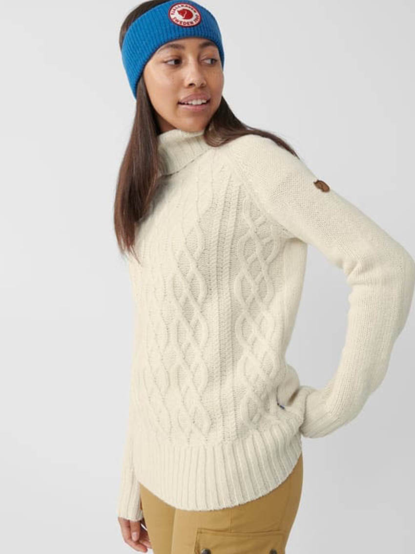 Mykt og varmt strikket pannebånd i mønstervev med nordiske aner. Produsert uten PFAS.