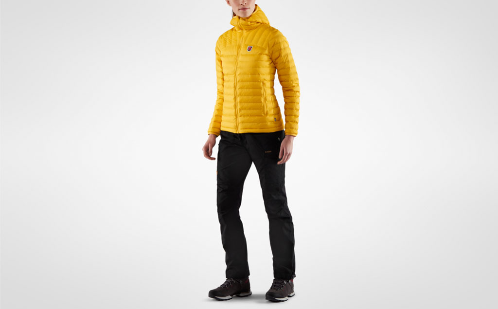 Lett, fleksibel dunjakke med hette til vinteraktiviteter. Produsert uten PFAS.