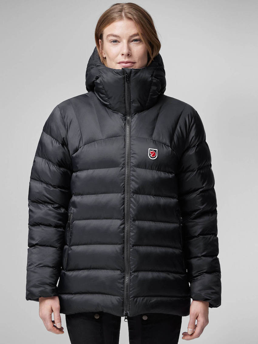 Lang og godt isolert dunparkas til vinteraktiviteter under veldig kalde forhold. Produsert uten PFAS.
