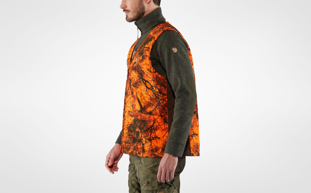 Lett og allsidig jaktvest med kamuflasjetrykk. NB! STOR I STØRRELSEN.