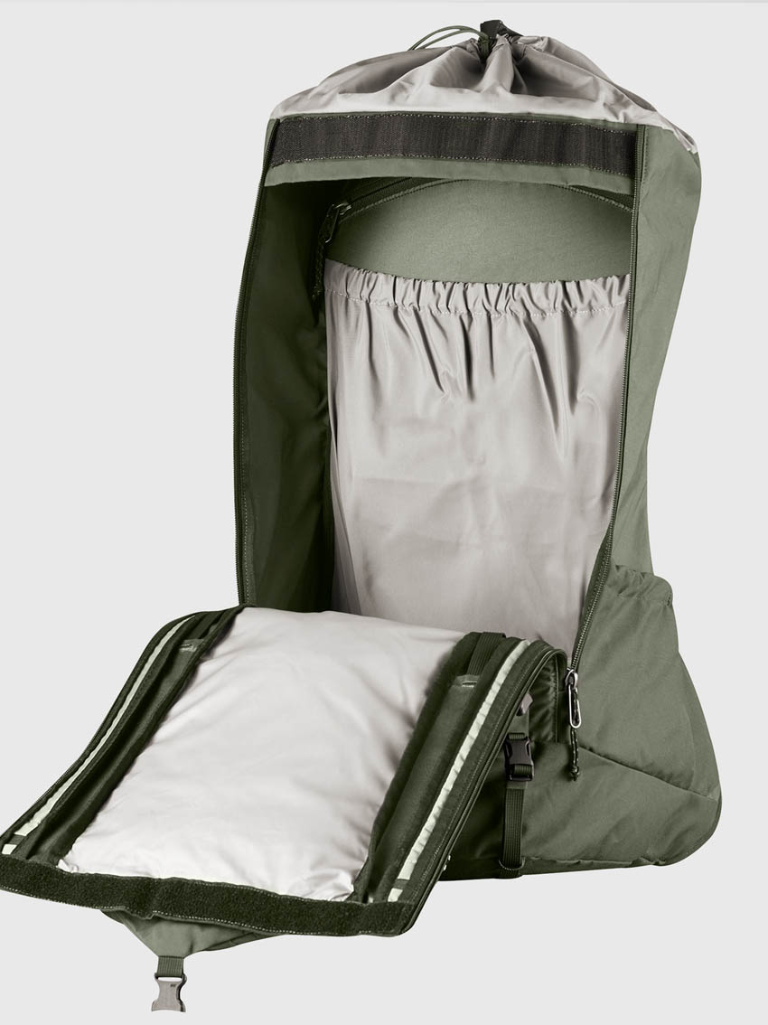 Lett og slitesterk ryggsekk på inntil 65 liter, perfekt for turer til fots i varmt vær. Produsert uten PFAS.